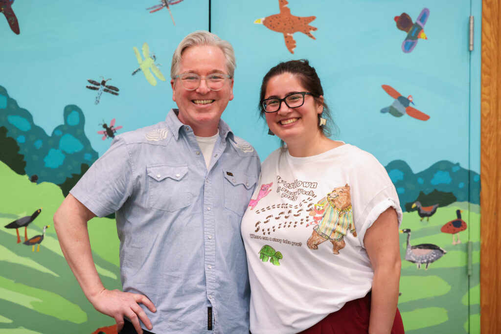 Guest author/illustrator Matt Phelan and Lower School Librarian Heather Tannenbaum -