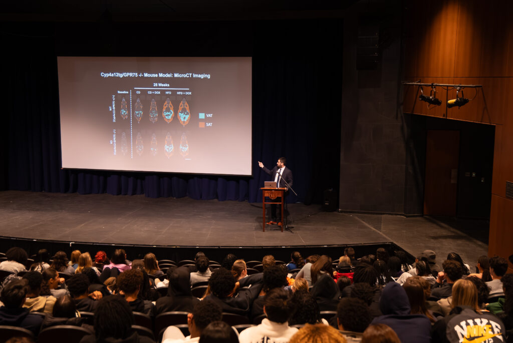 We recently had the honor of welcoming Dr. Victor Garcia ’03 to campus. Dr. Garcia is an Assistant Professor in the Department of Pharmacology at New York Medical College, where…Read More Read LessWe recently had the honor of welcoming Dr. Victor Garcia ’03 to campus. Dr. Garcia is an Assistant Professor in the Department of Pharmacology at New York Medical College, where his groundbreaking research led to the discovery of a receptor (GPR75) involved in regulating obesity, diabetes, and cancer. He holds a patent and has contributed to the development of several drugs targeting these diseases. He is also deeply passionate about mentoring and empowering young scientists. Dr. Garcia visited classes, met with students, and spoke at the Upper School Assembly where he talked about his professional journey, his work, and his time at Westtown. Students were excited to engage with Dr. Garcia both in and out of the classroom.