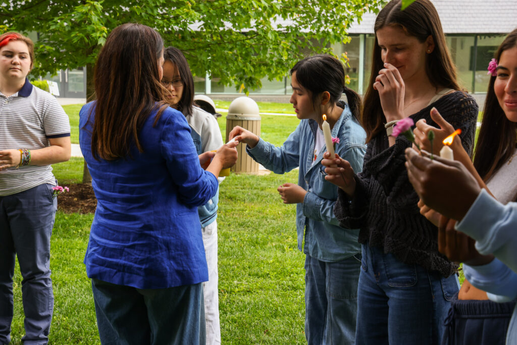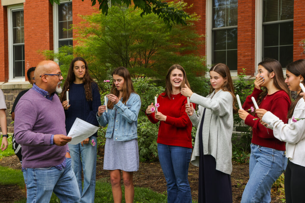 At the end of the school year, students were inducted in to Las Alas Sociedad Honorífica Hispana de Westtown - the National Spanish Honor Society. The National Spanish Honor Society’s…Read More Read LessAt the end of the school year, students were inducted in to Las Alas Sociedad Honorífica Hispana de Westtown – the National Spanish Honor Society. The National Spanish Honor Society’s goal is to recognize high school achievement in Spanish and Portuguese and to promote interest in Hispanic and Luso-Brazilian studies. Upper School Spanish teachers Mercedes Ureña Durán, Juan Rodriguez, and Cynthia Voorhees and Middle School Spanish teacher Franco Yanelli led a candle-lighting ceremony (outside, of course!) then awarded students their certificates. ¡Felicidades, estudiantes!