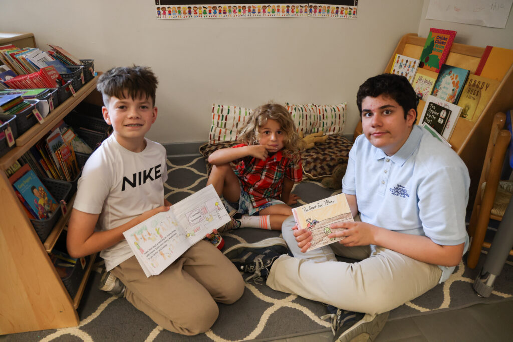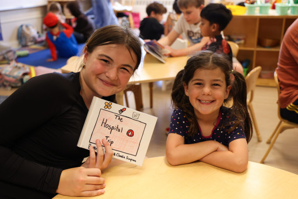 Every year, as part of the teacher Abby Lausch's English Language Arts class, seventh graders learn about writing and storytelling and then work with the Primary Circle students—their "book buddies"—to…Read More Read LessEvery year, as part of the teacher Abby Lausch‘s English Language Arts class, seventh graders learn about writing and storytelling and then work with the Primary Circle students—their “book buddies”—to co-author and illustrate a book. At the end of the year, the book buddies had a “publish party,” where they read their final books together, had a cool treat, and shared recess time. See more photos here!