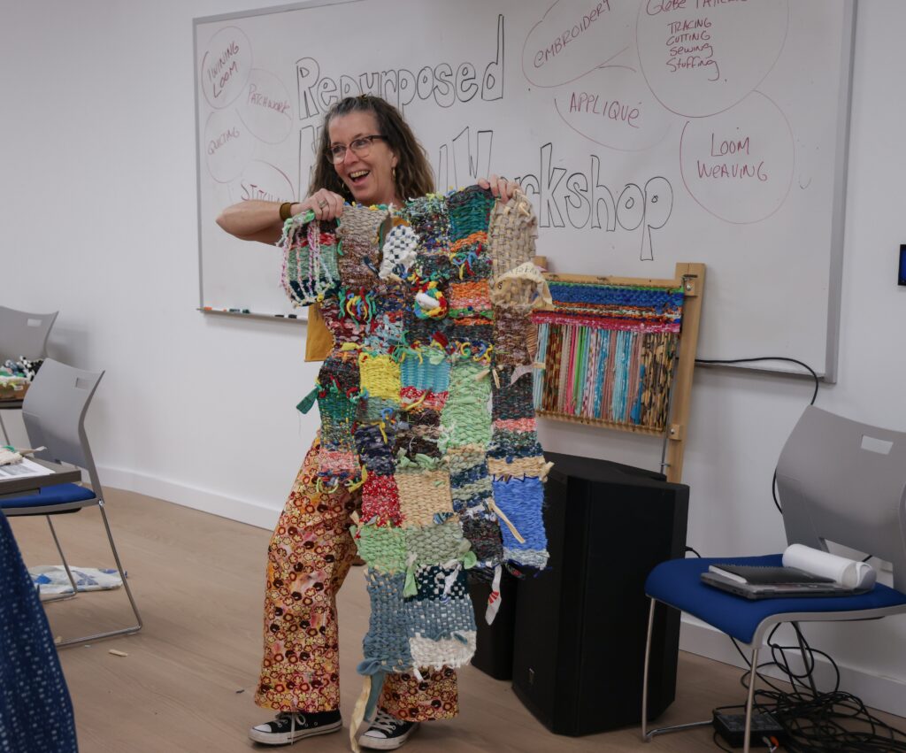 This spring Middle School and art teachers Cindy Hodgson and Marta Willgoose Salo welcomed Stephane Rowley, Philadelphia-based mixed media artist, as the visiting artist. Stephane collaborated with students using weaving, quilting, embroidering, sewing by machine and hand, knitting, and more to create a fiber piece which will be installed in the CLA. Students explored textile traditions, especially pertaining to reuse and repair such as Kantha, Sashiko, and piecework quilting to create an installation to minimise and upcycle textile waste. See her work with students here!