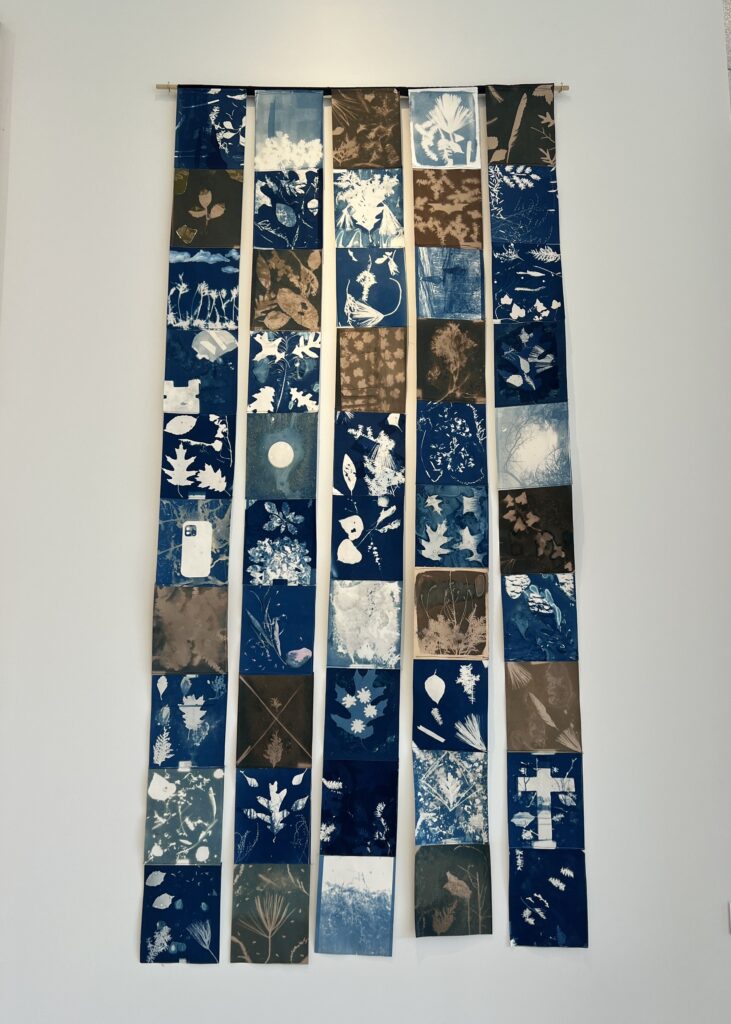 The Upper School was thrilled to have Westtown alum Sarah Bourne Rafferty ’00 as the McLear Artist in Residence this year. Sarah worked with students to create cyanotype prints and together they created the beautiful work that hangs in the CLA Jehan ’94 and Jeannie Chu Gallery, pictured below.Sarah’s work ranges from photographs to books to prints with a particular love for alternative process/non-silver photography. She is engaged in a line of inquiry that stretches beyond a particular medium. Sarah is mesmerized by the interweaving of thoughts into words. She is consistently inspired by the natural world, be it her small back yard or adventures on mountain tops far away. Parts of the natural world often appear intertwined with words or lines of text as she tries to dissect what is happening with the changing of the seasons and how they can relate to communication.
