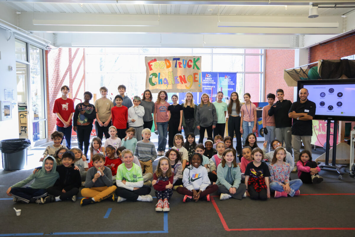In the culmination of their Food Truck Challenge project, seventh-grade science students hosted their “customers”—the third graders. For this design thinking project created by science teacher Carlos Charriez, the seventh graders were challenged to design a food truck for their Lower School friends that focused on healthy eating. Centering the creative process on empathy, they were tasked with interviewing the third graders, considering special dietary needs, and then reworking their concepts based on feedback from their customers. At the reveal day of the Food Truck Challenge, third graders got to sample the offerings that ranged from plant-based milkshakes to grilled fruit!