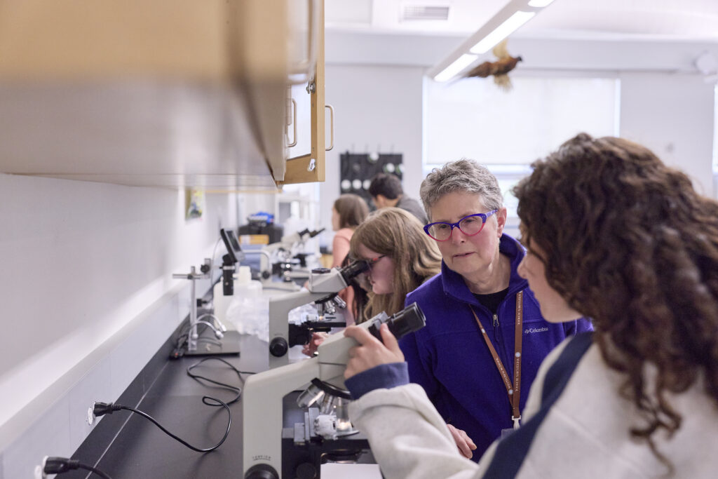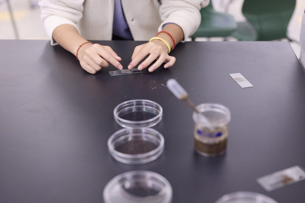 Through the support of the McLear Visiting Artist Fund, we were honored to welcome Rebecca Kamen this fall, an artist and lecturer on the intersection of art and science. Kamen says her “artwork is informed by wide-ranging research into cosmology, history, philosophy, and by connecting common threads that flow across various scientific fields to capture and re-imagine what the scientists see.” She worked with students from Diantha Giltz’s and Domenic Frunzi‘s art classes to explore these connections between art and the sciences. Students first visited the lab in the Science Center to look at various types of soil (and the organisms in it) through microscopes, then used what they saw as inspiration for their sketches and art pieces.