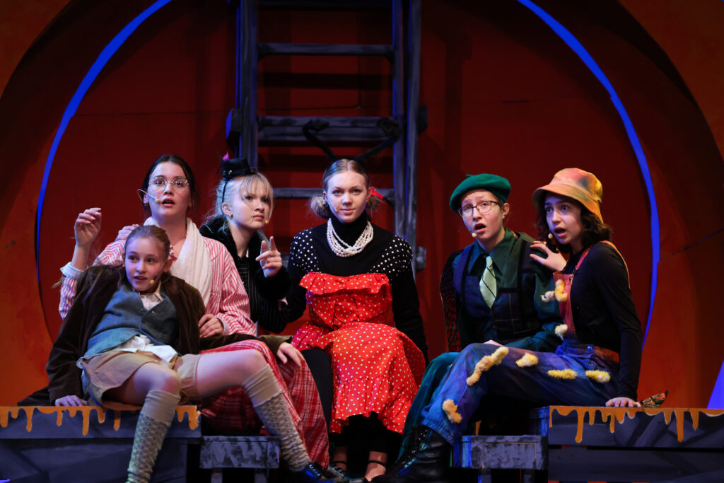 The Middle School presented James and the Giant Peach, a production based on Roald Dahl’s “masterpeach” of a tale with music and lyrics by Benj Pasek and Justin Paul. When James is sent by his conniving aunts to chop down their old fruit tree, he discovers a magic potion that grows a tremendous peach, rolls into the ocean and launches a journey of enormous proportions. James befriends a collection of singing insects that ride the giant piece of fruit across the ocean, facing hunger, sharks and plenty of disagreements along the way.