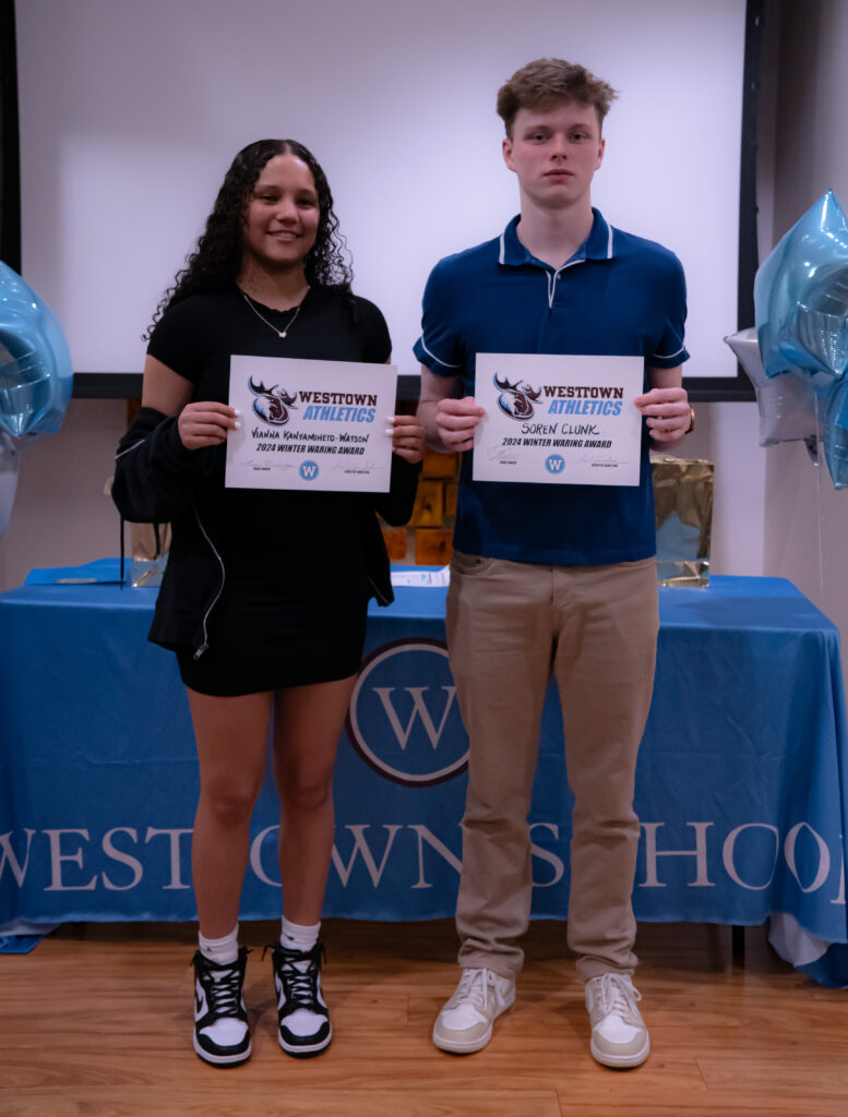 Congratulations also go to Waring Award winners Soren Clunk ’24 and Vianna Kanyamiheto-Watson ’25! The Waring Award recognizes athletes who “The Waring Award is given at the culmination of each sport season to the student athlete(s) who “have dedicated themselves day in and day out, in service of their school, teammates, and coaches. This award is intended to lift up those who constantly strive for improvement, who persevere when things are tough, and who lift up those around them with their tireless effort and positive attitude.”