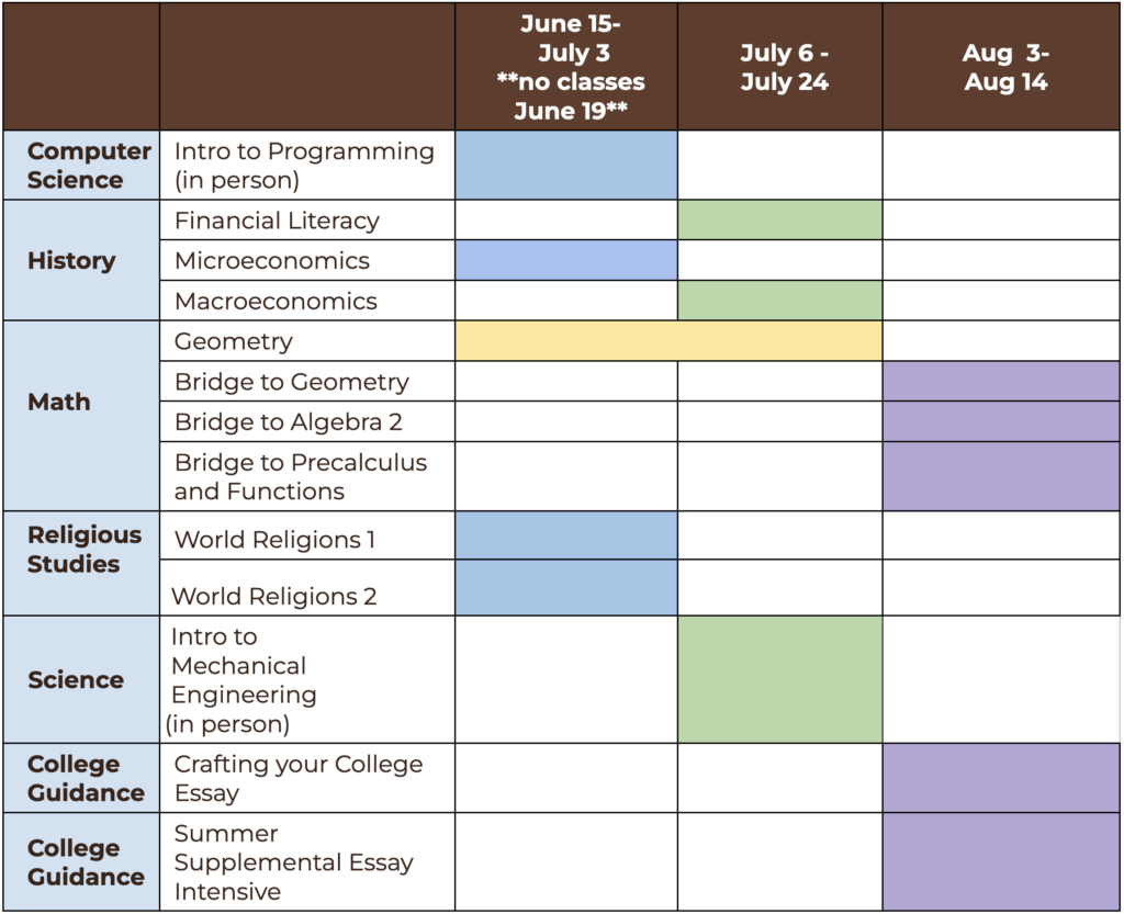 Individual course times and office hours are visible in the course descriptions. Our goal is to provide an inclusive opportunity to students, both local and international. We have attempted to identify synchronous class times that will work across a broad variety of time zones.