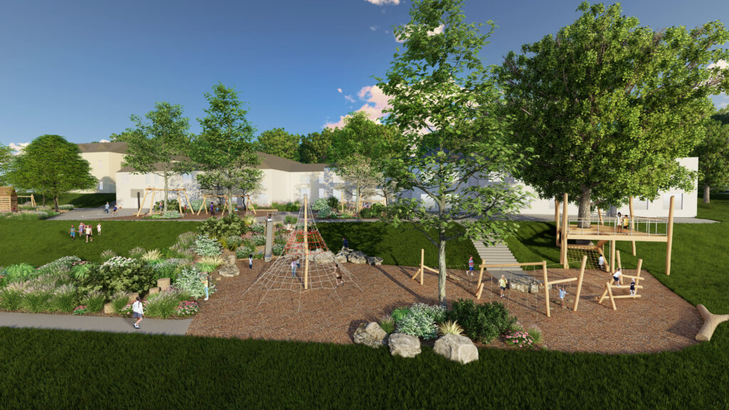 Our new Lower School playscape, expected to be completed late this fall, represents a thoughtful blend of imagination, environmental stewardship, and community collaboration. The vision for this space emerged through a series of workshops and discussions that included educators, students, parents, and landscape architects, ensuring a design that resonates with our community’s needs and best practices for learning and play. This dynamic playscape will feature a giant slide, a Viking swing, a treehouse, a rain garden, and bouldering scrambles, all created to inspire joy and connection with the natural world. Throughout the process, we prioritized sustainable materials and designs that foster creativity, physical activity, and a deep appreciation for the environment. From the first sketches to the final touches, every decision was made with the well-being and growth of our students in mind.